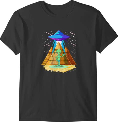 Alien Abduction Egyptian Pyramids T-Shirt - Vintage Black Tee For Men - Trendy UFO And Ancient Egypt Graphic Shirt