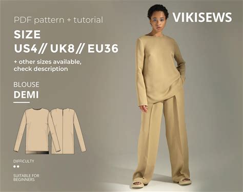Demi Blouse Sewing Pattern With Tutorial Size US 4 UK 8 EU 36