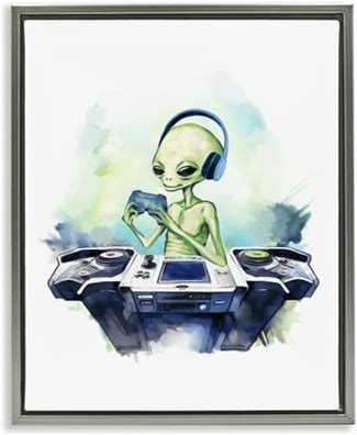 Stupell Industries Tech Alien Playing Video Games Fantasy & Sci-Fi Painting Black Floater Framed Canvas Art Print Wall Art, 17 X 21