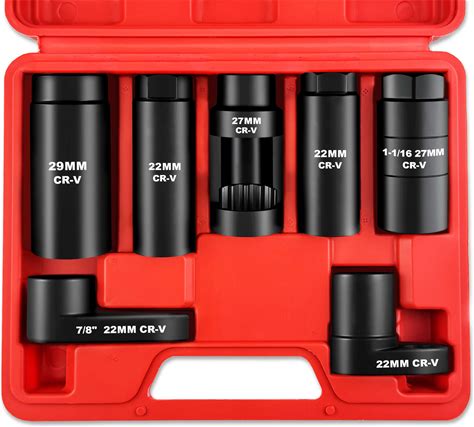 10Pcs Oxygen Sensor Socket Set, Universal O2 Sensor Wrench Remover, 3/8" 1/2" Drive X 7/8" 22mm 27mm