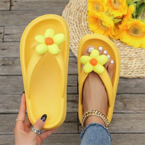 Women's Colorful Flower Flip Flop Sandals - Cute Summer Beach Slippers With Soft Cushioned Sole For Casual Wear, Pool, And Vacation