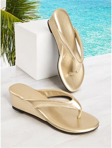 Women's Gold Wedge Flip Flop Sandals - Shiny Metallic Beach Slides For Summer Vacation, Travel, And Casual Wear