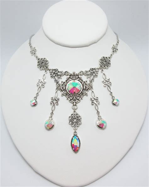 Crystal Clear AB Stones Gothic Antiqued Silver Necklace Choker Bib Filigree Victorian Edwardian Medieval Steampunk Goth Bridal Bride Wedding